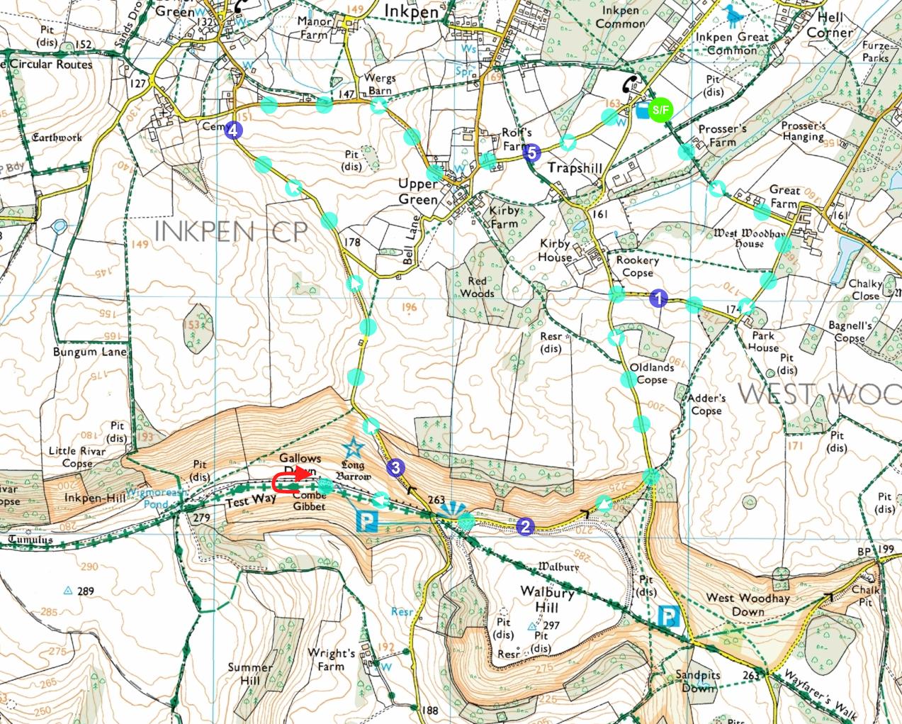 - Start/Finish: Crown & Garter Pub, Inkpen (RG17 9QR)